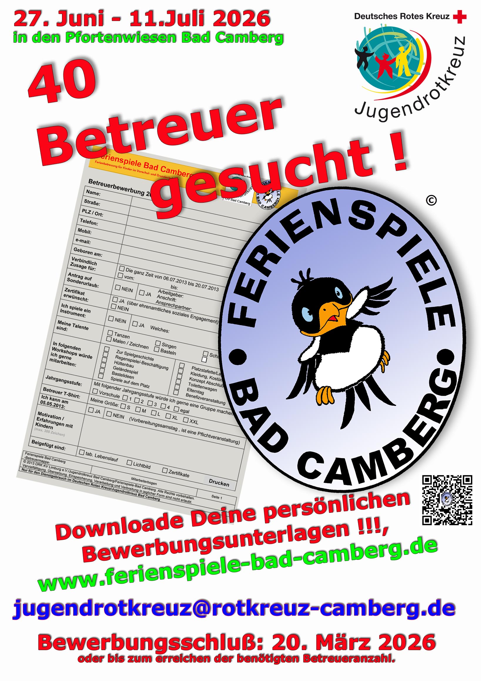 Die Bewerbungsunterlagen für unsere jugendlichen Betreuer stehen bis zum 20. März 2026 bereit: