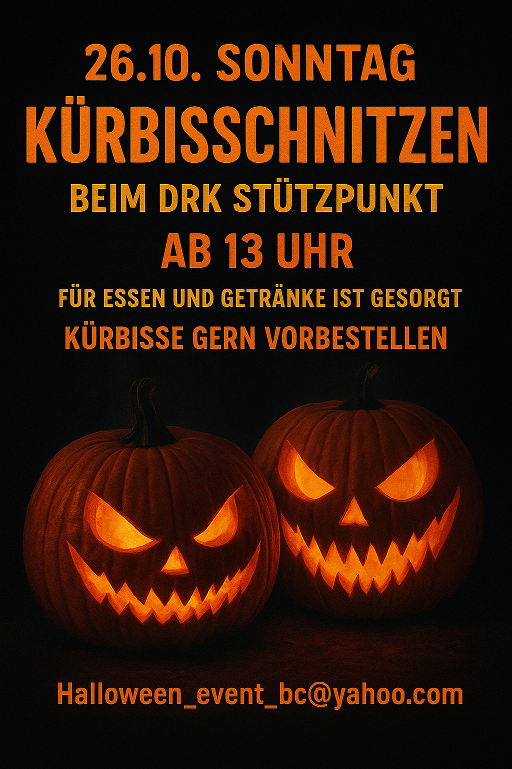 Kürbisschnitzen am 26.10.2025 Vorbestellung Kürbisse: halloween_event_bc@yahoo.com